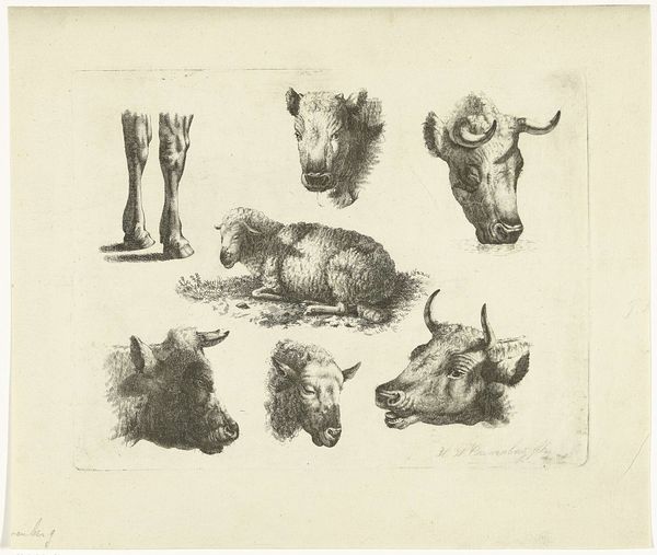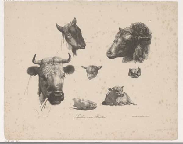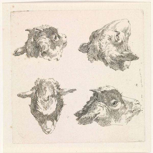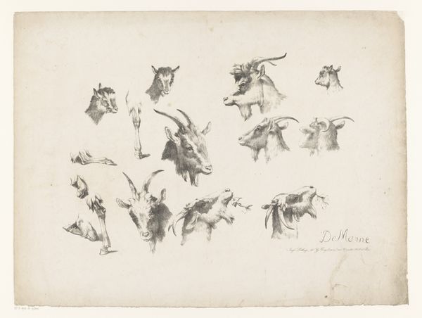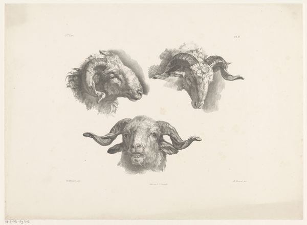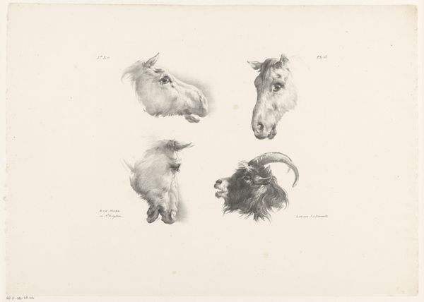 Carel Christiaan Antony Last made this drawing of two horse heads and two ram heads in the Netherlands, but we don’t know exactly when. This work connects to the long tradition of animal studies within European art academies. From the 17th century onward, art academies played a key role in shaping artistic production and taste. They prescribed what was considered proper subject matter. Animals were a popular theme for study because they allowed artists to practice their skills in anatomy and observation. Look at how the artist uses line and shading to create a sense of depth and texture in the animals' fur. This drawing may well have been a preparatory sketch for a larger painting or print. Understanding its place in academic practice gives us insight into the social conditions that shaped its creation. For further research, explore the curriculum of Dutch art academies in the 19th century. Consider also the role that prints played in disseminating artistic knowledge. By looking at these things, we get a fuller understanding of this drawing and its cultural meaning.