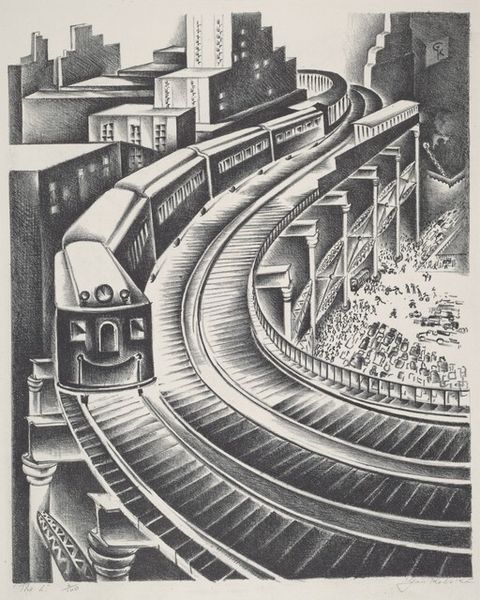 William Parker Abbe created this lithograph, "City by the Sea," using a traditional printmaking process involving a flat stone and greasy crayon. Consider the labor involved in creating this image. The artist meticulously rendered the scene using lithography, a process demanding skill and patience. The sharp contrasts, achieved through the manipulation of grease on stone, create a starkly surreal image of urban life blending with the sea. The buildings, drawn with precision, lean into the aquatic depths, populated with fish that mirror the city dwellers above. The artist used the lithographic process to achieve a social commentary. The layers of detail are not just aesthetic choices, but a reflection on the convergence of nature and industrialization, the mundane and the fantastic, in the modern city. Abbe asks us to consider the structures that shape our lives and the hidden worlds that coexist with them. Ultimately, materials, methods, and context are inseparable in understanding the powerful message of art.