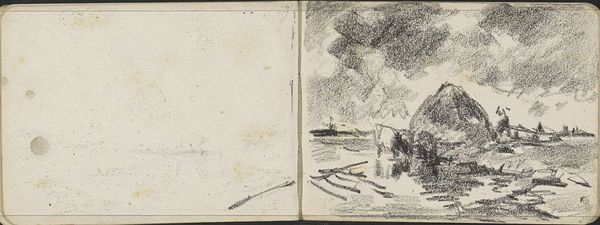 This is Willem Cornelis Rip’s pencil sketch of cows by a waterside. The roughness of the marks and the way he leaves one side of the page blank suggests an intimate, immediate study from life. I love seeing an artist's process like this; it feels like a direct connection to their thinking. The physical texture of the paper contrasts with the frenetic energy of the sketch. Rip uses a range of marks, from delicate, almost hesitant lines to more assertive, dark strokes that conjure the bulk of the cows, and the vague, greyish shadow of the sky. Notice how the sketch is anchored by the dark mass of the cows in the foreground, yet dissolves into lighter, sketchier marks further back. It reminds me of Constable’s cloud studies, with their attempts to capture fleeting atmospheric effects. Ultimately, art is an ongoing conversation across time, an embrace of ambiguity where definitive meanings dissolve into a sea of interpretation.