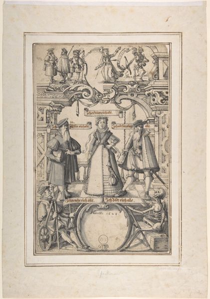 Frans Hogenberg created this print of Jacobus and Anna, likely sometime between 1540 and 1590, using the intaglio process. Intaglio is a method of printing in which an image is incised into a surface, here a metal plate, and the incised line or sunken area holds the ink. It is a process demanding both precision and physical effort, requiring the engraver to apply significant pressure to carve the image. Look closely, and you’ll see the fine lines, each one carefully etched, that create the portraits and heraldic symbols. The choice of intaglio speaks volumes about the intent behind this print. Unlike a woodcut, which yields a bolder, more graphic image, intaglio allows for a high level of detail and tonal range. The medium mirrors the social context: printmaking at this time aided in disseminating images and information across Europe, playing a crucial role in shaping political and cultural identities. The labor-intensive nature of intaglio printing also reflects the value placed on craftsmanship and skill in early modern Europe.