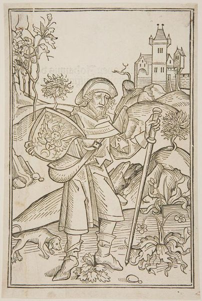 Curator: This is "Three Pilgrims" by Jost Amman, created sometime between 1539 and 1591. It’s a striking image. Editor: There's an immediate sense of weariness to these figures. The lines of their clothing convey a palpable sense of weight and texture. Curator: Indeed. Observe the meticulous cross-hatching, a technique integral to printmaking, which gives dimension to their forms. Consider, too, the materiality of the woodblock itself and the labor involved. Editor: And the social context—these pilgrims, likely common folk, not noble subjects—their depiction suggests a shift in artistic focus towards everyday life. Curator: Perhaps. But I read the composition as primarily a study in form and light, where symbolic weight is given through line. Editor: Well, it's also about the act of journeying and seeking meaning—it speaks to something deeply human. Curator: Yes, but the visual language, the structural interplay, resonates independently of its narrative. Editor: True, a beautiful example of how material and meaning can coalesce. Curator: A compelling work, irrespective of context.