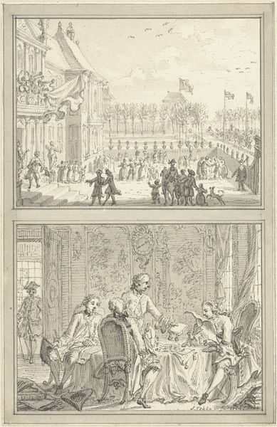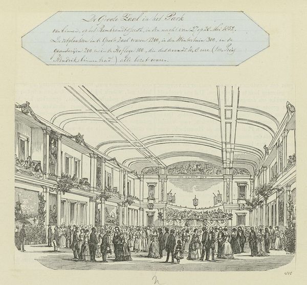 Editor: This is an engraving from 1861, titled "Visit of King Willem III to Emperor Napoleon III." The crisp detail really strikes me. What story do you see unfolding here? Curator: Well, I see two stories, really. The print itself, its production and distribution as a mass-produced image tells a story about 19th-century media and the appetite for images of power and spectacle. The industrialization of printmaking allowed for wider dissemination of these images, reinforcing narratives of national importance. Then the content illustrates the political climate and labour relations of the time. How do you read the depiction of this encounter? Editor: It does seem to present the rulers almost as spectacle, these elaborate displays for public consumption. Curator: Precisely! And what are the processes involved in making it happen? How much did it cost the hosting society, the soldiers’ preparation, the horses… the implications are quite revealing regarding the labour put into upholding these grand images. Consider how this scene, etched with acid on a metal plate, mimics and reinforces the existing social structures. It isn't just a neutral depiction of history. What is included and, more importantly, what is omitted in the images, becomes really significant in reading the social text. Editor: I hadn't thought about the act of engraving as part of the message itself, it's like a form of manufacturing grandeur! It is mass-produced imagery shaping our understanding. Curator: Exactly! It's a commercial product designed to bolster national identity, through skilled labour that rarely receives the credit it deserves. Considering its materials and their societal roles gives the art added layers of purpose and symbolism.