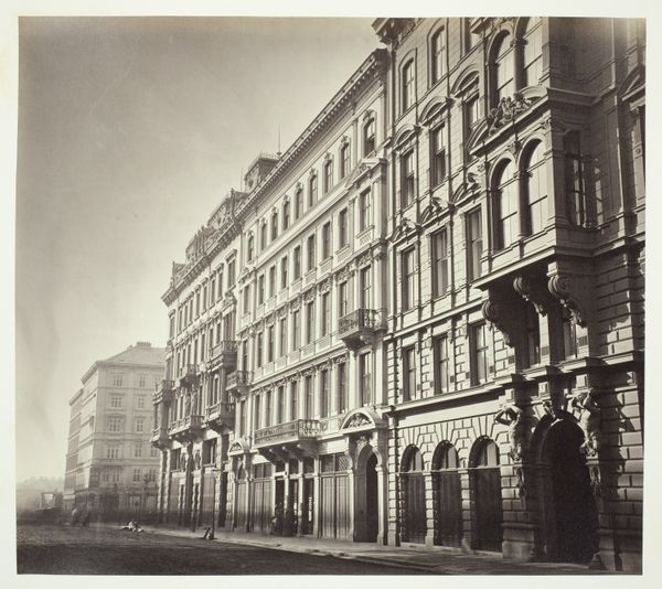 This photograph shows the Burg-Ring No. 1, the home of Simon Ritter von Biederman, and was made in Vienna, Austria by an anonymous artist. The image presents us with a moment in the rapid transformation of Vienna, probably in the late 19th century. The Ringstrasse, or Ring Road, was built on the former city walls as a symbol of progress, and this building represents the new wealth and power of the city's elite. Looking closely, the photograph shows the clean, ordered architecture of the building and the wide, open space around it, reflecting the values of the time: order, prosperity, and a sense of civic pride. The absence of people suggests a kind of idealized vision of urban life, one that is carefully managed and controlled. Photographs like this were often commissioned by wealthy patrons or institutions to document the changing cityscape. By studying historical archives and records, we can learn more about the social and economic forces that shaped the city and the ways in which people experienced it.