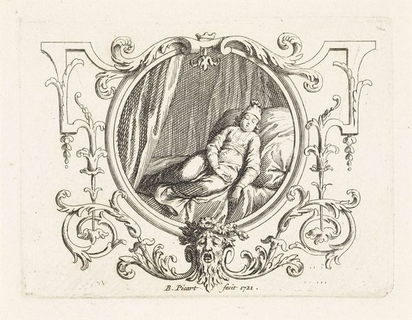 Jacob Folkema created this print, "Vignet met de personificatie van Boetvaardigheid", using engraving techniques. Engraving involves meticulously cutting lines into a metal plate, which then holds ink to produce the final image. The density of these lines determines the tonal values, creating subtle gradations of light and shadow. Consider the precision this demands, and the skill required to translate an idea into physical form. It’s no accident that printmaking flourished in the early modern period; it was a vital means of disseminating information, propaganda, and of course, artistic ideas. The subject of penitence is also significant; the engraving would have invited reflection on themes of morality and self-improvement. This speaks to the power of images to shape our understanding of the world, influencing values and social norms. The materiality of this print, combined with its subject matter, invites us to reflect on the connections between art, craft, and the human condition.