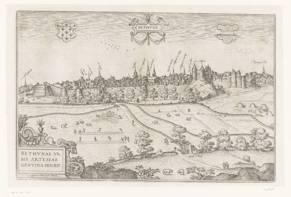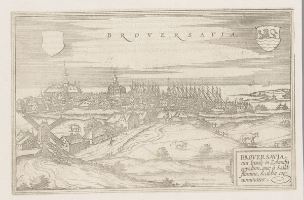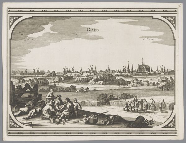 Pieter Hendricksz. Schut created this print of Goes, likely in the mid-17th century, using etching or engraving techniques on paper. The image is defined by a network of fine lines, carefully incised to illustrate a bird's-eye view of the fortified city. The success of prints like this one depended on skilled craftsmanship, and the labor-intensive process of carving lines into a metal plate. It was a process geared towards mechanical reproduction. Consider all the windmills, and ships – technologies dependent on the expertise of millers, shipbuilders, and sailors. This print testifies to a culture shaped by trade and travel. The level of detail speaks to a desire for accurate representation and efficient communication, while the composition is a celebration of human industry and ingenuity. By focusing on material, process, and context, we can understand how prints like this one blurred the lines between art, craft, and social documentation.