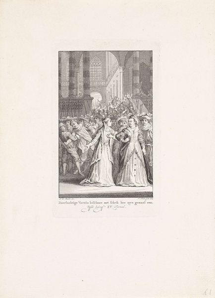 Editor: So this engraving, “Inhuldiging van Willem Frederik, prins van Oranje als souverein vorst, 1814" by Reinier Vinkeles depicts a grand inauguration ceremony. It's quite detailed, even intricate for an engraving, but a little stiff, maybe? How do you see it? Curator: I see a fascinating confluence of materiality and social power. The choice of engraving, a medium that allows for mass reproduction, is crucial. Consider the context: 1814, the dawn of a new political era in the Netherlands. By employing engraving, this image, and thus the idea of a sovereign prince, could be disseminated widely. It is an object manufactured for political consumption. Editor: So, it's not just art, it's propaganda? Curator: Precisely. The materials and method were consciously employed to manufacture a specific perception. What impact do you think it might have had on various social classes, considering accessibility and levels of literacy at the time? Editor: Well, engravings are relatively affordable, so it would circulate among the middle class, and maybe even further if displayed in public places. Did the choice of realism contribute to the message? Curator: Indeed. The detailed realism in the engraving creates a sense of authenticity and accuracy. The labor involved in crafting this illusion is also critical, don’t you think? Someone physically etched this image, mass-producing a monarchical idea. How does the print’s availability, its reproducibility, shape the perception of power itself? Editor: I see. It presents the image of the monarchy to many and reinforces the concept with each impression. It almost feels… industrial, like the idea of monarchy is being mass-produced! It seems different from a painting, say. I’d never thought of art in these terms before. Thanks! Curator: Thinking about the intersection of process, materials, and socio-political context can give you very rich new perspectives on an image.