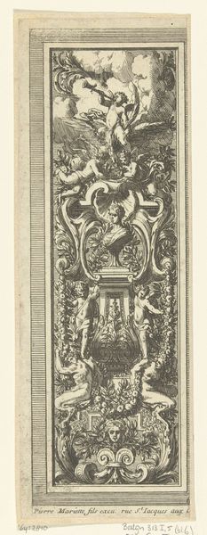 Editor: We're looking at "Design for a Knife Handle with the Personification of Charity" from around 1580-1600, etched by Johann Theodor de Bry. It's a flurry of Baroque detail in print. It makes me wonder, in such a time of finery and supposed "elegance," why depict something so…wholesome, really, on a knife handle? What are your thoughts on this kind of contrast? Curator: It *is* wonderfully ironic, isn’t it? Juxtaposing violence – what a knife implies – with charity. Think about it: this isn't just some decoration; it's an allegory! We see Charity herself, surrounded by children needing her care. Perhaps the intention was to remind the user of their moral duties, even in daily acts. A tiny nudge towards ethical consumption…or maybe, you know, just opulent virtue signalling! What do you make of the composition, beyond the obvious symbolism? Editor: The composition seems busy, but in a way that keeps my eye moving. All those swirls, little flourishes...even the snails, near the bottom, look strangely ornate! I'm also interested in the contrast between the figural element in the center with all the ornamentations above and below. I mean, do the squirrels have to be *everywhere*? Curator: "Everywhere" is precisely right. De Bry was a master of detail! Consider how the design marries form and function. The knife is a tool for *cutting*, for separating. Yet the imagery calls for *togetherness*, generosity. It's a playful, paradoxical dance. It's also deeply representative of Baroque sensibilities—finding harmony through contrasting elements. This object says so much. We might reflect that even now, design can be an ethical Trojan Horse... right? Editor: Definitely. It’s incredible how much an everyday object, something so small, can tell us about the values, or at least the aspirations, of the time. Now I can never look at a knife the same way again. Curator: Nor I! Thanks for bringing such insightful questions to the table. Now, about lunch...?
