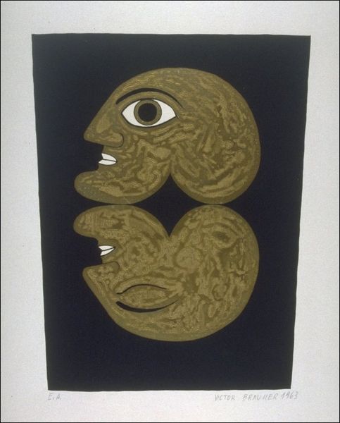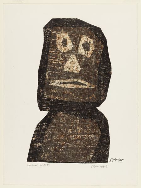 Jean Dubuffet made this print, Smile, with lithographic ink on paper, and well, it’s a trip! First off, the colors—earthy reds and yellows, like a desert sunset, but all mottled and porous. Then you notice the face, primitive, cartoonish, like a child’s drawing on a cave wall. I’m immediately drawn to the nose, or rather, that abstract cross shape floating in the middle of the face, as if the nose is an afterthought, or a symbol rather than a feature. It’s crude, sure, but also full of intention. Dubuffet’s all about that rawness, that immediacy. It’s like he wants to get back to the basics of mark-making, to tap into something primal. He definitely owes a debt to Paul Klee, who was similarly interested in the art of children, and using these forms to unlock a more intuitive way of looking at the world. And isn't that smile… kind of menacing?
