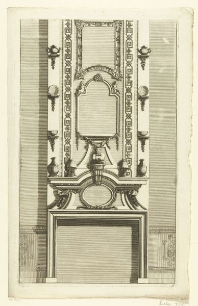 Curator: What a somber yet elegant depiction. The somber tones are striking. Editor: This engraving from around 1740 by Jan Caspar Philips showcases the gravesite monument dedicated to Antoni van Leeuwenhoek, located in the Oude Kerk in Delft. The setting has an intriguing mix of monumentality and enclosure. Curator: The image is intensely formal, a rigid structure, and a controlled symmetry in this work. There's also the contrast of the delicate details versus the stern depiction. A gateway and towering form reminds of hierarchical reverence of that time, what is highlighted or missing may be more significant than what we see. Editor: Absolutely, its interesting the monument almost appears as a stage set; how space and location shape a collective historical memory. Curator: Given van Leeuwenhoek's pioneering work with microscopes, it's also a powerful statement, placing scientific discovery within both a religious space and a grand tradition of remembrance, how a man and his life are celebrated long after. It suggests a merging of faith and scientific inquiry. The surrounding bars act like a protective shell. Editor: Yes, and it speaks to the status that Leeuwenhoek attained within Delft society. The Oude Kerk wasn't just any burial ground; it was a significant civic and religious space. The placement, size, and design are deliberate, meant to project not just his memory, but the city's connection to scientific achievement. I'm thinking about other instances in Dutch Golden Age culture that highlight similar themes. Curator: Ultimately, as viewers, we engage with multiple layers – the factual, the symbolic, and the emotional. Editor: Indeed, a complex dialogue between a life, a place, and its lasting significance within society, culture and beyond.