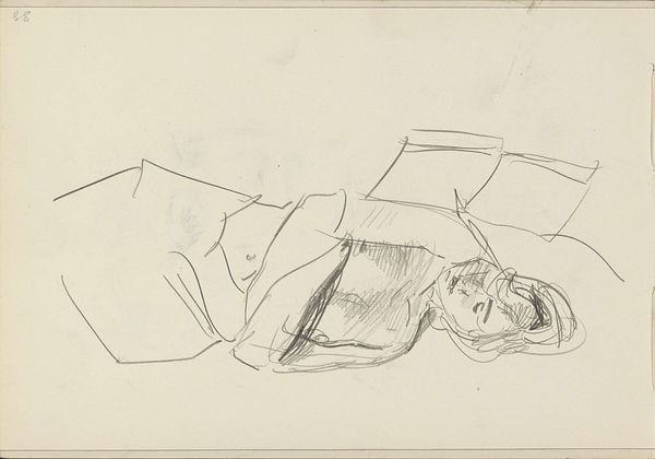 Editor: So this is Isaac Israels' "Two Standing Women", likely created between 1892 and 1900. It’s a pencil drawing, seemingly a preliminary sketch. I’m struck by how raw and unfinished it feels. What stands out to you when you look at this work? Curator: It's crucial to recognize the work for what it literally *is*: pencil on paper, a cheap, mass-produced commodity in the late 19th century. Israels' choice challenges the established hierarchy of art materials. How does this directness of process, the immediacy of the pencil line, affect our understanding of representation, particularly the representation of women at the turn of the century? Was this a study towards a more "finished" painting, and does that influence our understanding of its value? Editor: I see what you mean. It feels like a deliberate act, maybe even a comment on the commodification of art itself? Curator: Exactly! Think about the societal context: the rise of industrialization and mass production made materials like paper and pencils widely accessible. Israels' embraces the "lowly" medium. By doing so, is he commenting on the accessibility of artmaking itself, democratizing the process? And who are these women? What class do they belong to? The pencil lines obscure definitive detail and are quick, cheap marks to apply to the page, therefore the production cost of this image remains low. What are your thoughts on that? Editor: I guess that changes my initial perspective a bit. I saw it as unfinished, but now I’m wondering if that “unfinished” quality is actually a deliberate choice, highlighting the process and the materials. Curator: Precisely. It compels us to consider not just the 'what' - the figures - but also the 'how' and the 'why' of its creation. By decentering traditional oil paintings and elevating humble materials we are acknowledging an industrial shift that sees artwork as a material object created for a societal role or transaction. Editor: I never really thought about it that way, viewing it from the lens of production and the changing material landscape. Thank you. Curator: My pleasure, by thinking about those key themes of labor, consumption and process, we reveal a much wider artistic discourse.