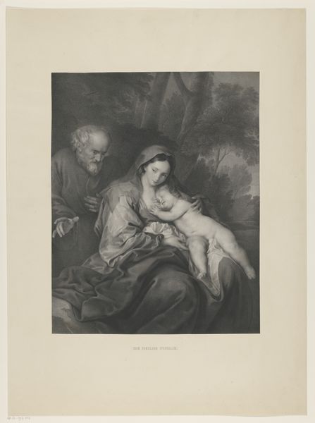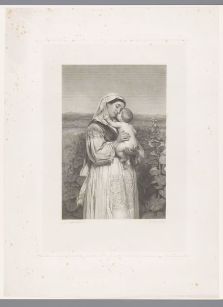 This work by Ephraïm Conquy presents us with a scene of a woman holding a sleeping child. The veil suggests a Madonna-like figure, echoing centuries of religious iconography. The tender embrace resonates with earlier depictions of the Virgin Mary and infant Jesus, like those of Raphael, where the mother-child bond symbolizes love and protection. This motif transcends religious art; we see it echoed in secular contexts, representing nurturing and maternal care. Consider the shift: from divine representation to universal human experience. Even in ancient Egyptian art, Isis cradling Horus embodies similar protective, maternal instincts. The persistent appearance of this motif reveals a deep, psychological need to see and celebrate the primal bond between mother and child. This recurs again and again, a continuous thread in the tapestry of human expression.