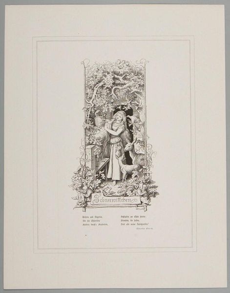 Curator: This is W. Werthmann’s “Eve of the Epiphany (Dreikönigslied)” currently residing in the Harvard Art Museums. It presents a captivating scene. Editor: Yes, a densely packed etching; it feels almost claustrophobic, yet the detail pulls you into the narrative. The textures achieved through the etching process are striking. Curator: Indeed. The composition, with its strong verticals and horizontals, creates a sense of order despite the lively activity. The procession of the three kings, illuminated by the star, is the focal point. Editor: And the contrast between the darkness and light guides your eye. I'm curious about the paper; its materiality surely impacts the final visual effect, lending a tactile quality to this reproduction. Curator: Precisely! The interplay between form and content creates a powerful, symbolic image. Editor: It makes you appreciate the handwork that goes into creating these kind of images. Curator: Absolutely. It certainly invites reflection on the nature of faith, community, and the traditions we uphold. Editor: Yes, I leave with a renewed appreciation for both the artistry and the historical significance embedded in this image.