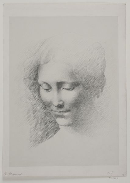 Editor: This is Carlo Cignani's "Head of a Young Woman in Three-Quarter View Facing Left," dating from around 1670 to 1700. It's a charcoal drawing and the delicate rendering gives it a very peaceful, almost melancholic feeling. What do you see in this piece? Curator: This drawing invites us to consider the social constraints placed upon women during the Baroque era. Notice the downcast eyes and the covered hair. These elements, while seemingly innocuous, speak volumes about the expectations of female modesty and piety prevalent at the time. The very act of depicting a woman in this way reinforces these societal norms. Editor: So, it's not just a portrait of a young woman? Curator: Precisely. Cignani's work operates within a system where female representation is often symbolic of broader power dynamics. We might ask ourselves: who is this woman? What are her options? Is she being represented or objectified? These questions open a space for feminist inquiry, allowing us to dissect the artwork's cultural implications. Consider the male gaze inherent in much Baroque art; how does this gaze impact our understanding of the subject? Editor: That’s a completely different perspective than what I initially considered. Curator: Art isn't created in a vacuum. Exploring how societal norms shape artistic expression helps us understand not only the artwork, but the world it reflects and reinforces. It asks us to actively question these representations. Editor: I’ll definitely think differently about similar pieces moving forward. Thanks! Curator: My pleasure, the dialogue is what matters most.
