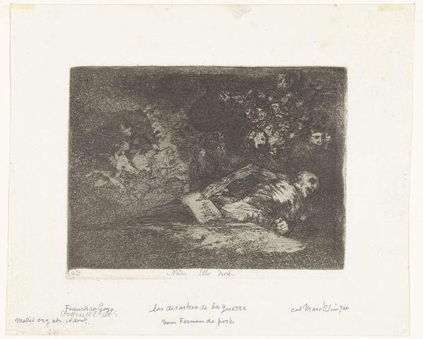 Editor: This print, "Isaak zegent Jakob," likely made between 1860 and 1900 by Johannes Arnoldus Boland, depicts a scene with three figures in a tight composition, rendered with fine lines of etching. It has a very subdued, almost hushed atmosphere. What do you see in this work, from your perspective? Curator: Well, it’s a history painting filtered through a specific lens, isn’t it? This scene represents patriarchal power structures, both in its biblical source material and the historical context of its creation. Look at the way Isaac, seemingly frail, is still positioned as the authority figure, bestowing his blessing. How do you see gender operating within this image? Editor: I hadn't thought about the figures in that light before. I mean, Jakob seems almost to be feigning humility... But, seeing them positioned in the frame as characters operating within established systems does bring a new dynamic to this family scene. Curator: Exactly. And who is present in the blessing versus who is excluded? Think about the representation of domestic space and the way those spaces reinforced gender roles. Consider, too, how the biblical narrative itself might have been used to justify social hierarchies of the period when Boland was working. Does knowing this shift your impression of that "hushed atmosphere"? Editor: It does, because now there is some implied violence, or something slightly amiss, under the visual texture of those etching lines. The details like clothing feel weighted. It now resonates less as an observation on devotion and more like an act of compliance to some oppressive patriarchal system. Curator: Precisely. Art isn't made in a vacuum, it's made within society. Editor: It really puts a different spin on a seemingly simple image when you look at the artwork through the socio-historical context and those theoretical frames. It's no longer just a biblical scene. It makes you wonder what the artist thinks about power, class and religion. Thanks for elaborating, it definitely gave me a deeper view. Curator: My pleasure. Engaging with art this way enables us to actively challenge and understand it’s relationship with power.