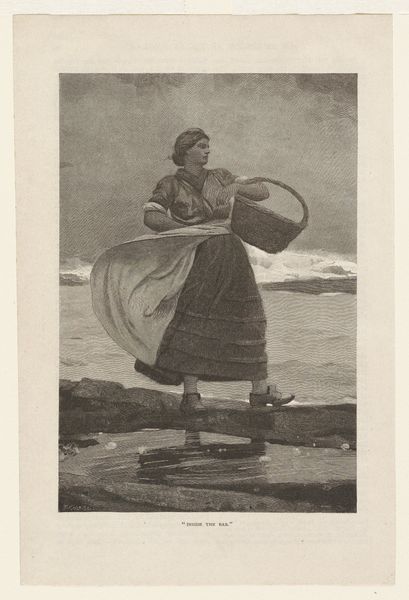 Winslow Homer made this watercolor painting in 1883. It depicts a woman standing on a rocky shore, watching two small boats struggling in a stormy sea. Homer's images of the sea resonate with broader issues of his time, such as the relationship between humans and nature, the role of women in society, and the challenges of maritime life. This was a time of growing industrialization in the United States and the expansion of cities. Some artists, such as Homer, were drawn to the natural world. They offered a vision of a simpler, more authentic way of life. Homer often depicted women in strong, independent roles, reflecting changing ideas about gender. The woman in this picture embodies strength and resolve as she gazes out at the ocean. Art historians consult a wide range of sources when researching artworks like this. We might consider weather patterns, nautical history, or the economic conditions of fishing communities in order to better understand how this image created meaning for viewers in the late nineteenth century.