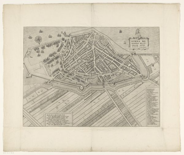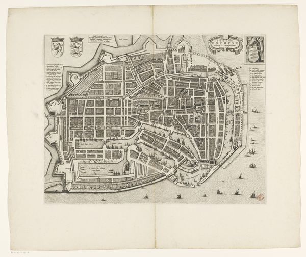 This is an anonymous, undated map of Enkhuizen, rendered with ink on paper. A striking feature of this plan is the tension between organic and geometric forms, as seen through its winding streets versus rigidly organised districts. Notice the top left, where the lines of the outer fortification meet the grid-like structures within. The linear precision used to depict this division of space hints at power structures defining the physical and social layout of the city. The cartographer's hand, guided by the needs of representation, creates a symbolic language that speaks to the control and administration of urban space. Look at how the map combines empirical observation with symbolic representation, revealing a deeper cultural and intellectual framework. This is a historical document which also functions as a complex cultural artifact.