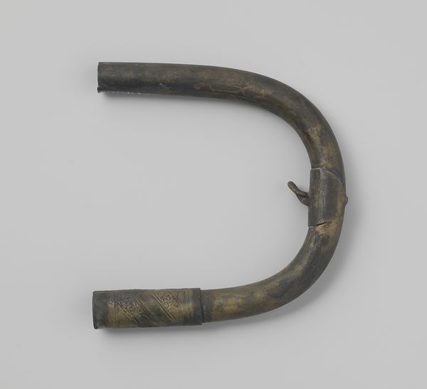 This is a walking stick handle made of black horn, probably sometime in the past by someone known as Gelria. The way it curves so smoothly, it's almost like a simple line drawing come to life. I love the materiality of it. The dark, polished surface that begs to be touched, and the way it reflects light – it’s so subtle, but it gives the whole thing a sense of depth. Notice the subtle baluster form, that slight swelling and tapering at the base. That’s where your hand would naturally grip. There's something so satisfying about the way that form follows function. It reminds me that art can be found in the everyday, in the things we use. Thinking about it this way, it's like the horn is having a conversation with, say, a Brancusi sculpture. I mean, who knew a walking stick handle could be so profound? It makes you think about art as something that's always evolving, always surprising us.
