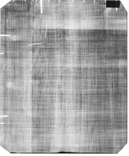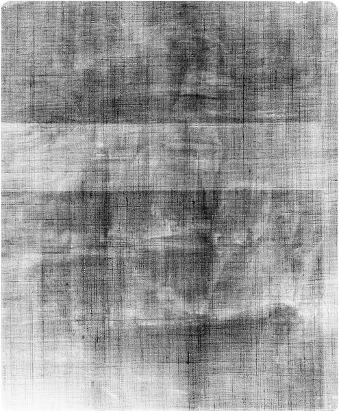 Curator: At first glance, this X-radiograph evokes a sense of texture. The interwoven patterns create a complex visual field, don't you think? Editor: Indeed. What we're looking at is a 14 x 17 film image of an X-radiograph taken of "William Cooper, died 1743 (Copy?)," originally attributed to Joseph Badger. The image's focus, of course, shifts from the finished portrait to the unseen layers. Curator: Exactly. The materiality here is fascinating—the weave of the canvas, the density of the paint, all made visible. It encourages us to think about the labor involved, the very process of creation, and perhaps even conservation. What's hidden beneath matters. Editor: I'm struck by how the X-ray technique flattens the image, distilling the portrait to its essential structure. It highlights the formal elements, the artist's decisions about composition and form. Curator: It certainly prompts questions about authenticity, too. Is it a copy? The X-ray could reveal information about underpainting or techniques inconsistent with the original artist. We can use this in discussions of value and legacy. Editor: Seeing the image this way, stripped of color and surface illusion, lets us contemplate the abstract qualities of the artwork itself. A powerful insight! Curator: Ultimately, this X-radiograph serves as a reminder to consider the many layers that contribute to our understanding and appreciation of art.