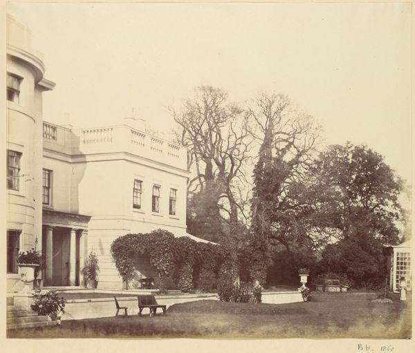 This stereoscopic image, Vooraanzicht van Huis Ter Horst, was created by Geldolph Adriaan Kessler. It’s a double view of a building, which, when seen through a special viewer, would create an illusion of depth. The sepia tones feel like a memory, a gentle wash over the scene. There’s a stillness in the image, a quietness emphasized by the symmetry of the architecture and the balanced composition. Look at the way the light falls softly on the building's facade, creating subtle shadows that give form to the structure. I love the little imperfections and the imperfections in the photographic process itself, the way the image seems to fade at the edges. It reminds me of a drawing, where the artist is constantly editing and refining their marks. It makes me think of Eugène Atget, the French photographer, who documented the architecture of Paris in a similar way, capturing the everyday beauty of the city. Art is an ongoing conversation, and this image speaks to that.