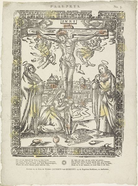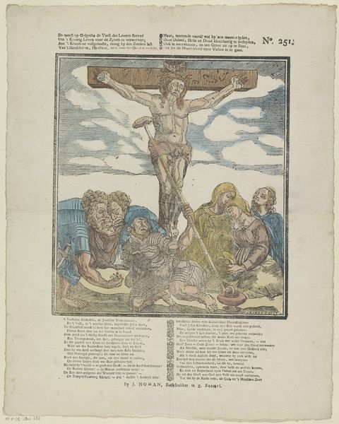 This colour print, Christus aan het kruis, was made by David Du Mortier en Zoon in Leyden. The Crucifixion is one of the most common subjects in the history of European art, but in the context of the 17th-century Netherlands, its meaning is complex. As a Protestant country, the Dutch Republic had officially rejected religious images. Nevertheless, prints such as this one demonstrate that the market for such imagery persisted. This print is a reminder that the social function of art is never simply defined by religious or political doctrine. The image also shows how art is produced in a network of social relations that goes beyond individual creativity. The presence of the words 'Du Mortier en Zoon' reminds us that art in this period was often produced in family workshops, which were an important economic unit in early modern Europe. To understand such images better, we must always look at how the changing structures of artistic production shape not just what is made, but also how images are consumed.