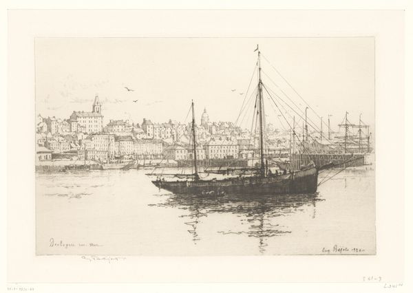 Editor: So this is "Harbor Scene, Amsterdam" by Denman Waldo Ross. It's a small, delicate pencil drawing. I'm immediately struck by its sense of stillness. What do you see in this piece? Curator: It feels like a captured breath, doesn't it? Ross uses the pencil so sparingly, yet he evokes the whole atmosphere of Amsterdam's harbor. Notice how the reflections in the water are as important as the buildings themselves. It’s like he’s asking us to consider what's real and what's merely a reflection. Editor: I never thought of it that way, but now I see how the drawing blurs the line between reality and illusion. Curator: Exactly! And perhaps that's what art is meant to do, after all, isn't it?