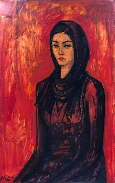 Editor: So, this painting is titled "The Red Shawl" by Iosif Iser. It’s an oil painting and... wow, it's incredibly textured! You can really see the strokes of the brush. What strikes you most about this piece? Curator: Well, looking through a materialist lens, I’m drawn to the materiality of the paint itself. Iser doesn’t hide the process; the impasto practically shouts. What kind of labor went into creating this surface? Was this rapid execution, or layered, considered application? And consider, too, the cost of the pigment, the availability of the canvas. Editor: I never thought about the expense of the paint! I was just focusing on how it looked. Curator: Exactly. And how does the choice of oil paint, a relatively modern, industrialized medium, inform our understanding of the subject? Is the red shawl, itself a textile, a mass-produced item or hand-woven? These things give meaning to the figure and the artistic intent. Editor: I see what you mean! Knowing the materials tells you so much more about the society and the art of that time. It changes how you view a piece, to consider production. Curator: Precisely. Think about the societal context required to make paintings and painting a feasible endeavor. Who had the money? Where are we, and who can be the art's patron and viewer? How has all of that impacted art and its meaning for different groups of people? Editor: That is a much broader, almost sociological take, than the more formal way I initially considered it, more focused on subject or form. Curator: And it all comes from just observing the artist’s choice of materials, which leads us to considerations of social context, cultural frameworks, the meaning of representation. A completely different level of inquiry comes simply from looking closely at the substance of the paint.