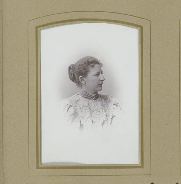 This photograph by Walter Martin is mounted on card stock with an oval window, a format widely available in commercial studios of the time. Photography in the 19th century was a game of light, chemistry, and time, and like all craft processes, it leaves traces of the maker’s hand. Here, we can see the subtle tonal gradations achieved through careful development. The card stock itself, likely machine-made, speaks to the industrialization of art materials and the rise of consumer culture. The whole process – from posing to printing to mounting – involved a range of skills, blending artistry with technical expertise and factory production. It’s easy to see photography as a purely mechanical process, but consider the amount of work involved: the photographer's skill, the studio assistants preparing materials, and even the labor of the sitter, holding still for the camera's gaze. Looking at this “portrait of a woman,” we recognize photography as both an artistic medium and a reflection of its time, blurring the boundaries between fine art and everyday craft.