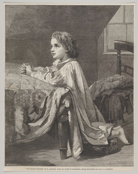 Charles Mertens rendered this etching of an old beggar woman seated before the Basilica of Scherpenheuvel. The woman's dark cloak, a symbol of mourning and perhaps destitution, contrasts sharply with the basilica, a beacon of hope and spiritual solace. This juxtaposition evokes a timeless question: how does faith intersect with earthly suffering? Think of medieval depictions of the Virgin Mary, often cloaked in blue, a color of divinity, yet her face etched with sorrow. Her image, like this woman’s, invites contemplation of pain and resilience. The gesture of her clasped hands, repeated in countless images across cultures—from praying monks to grieving mothers—speaks to a universal plea for comfort. This simple act carries an emotional weight, engaging viewers on a deep, subconscious level. It reminds us that symbols evolve, yet their core emotional power endures.
