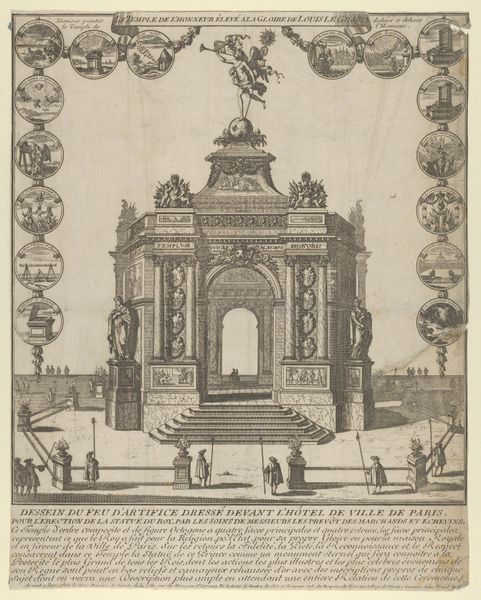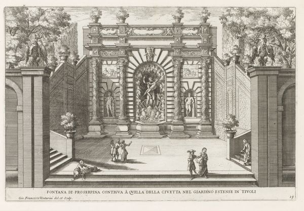 This etching by Giovanni Battista Falda captures the fountain in the gardens of the Villa Aldobrandini, circa 1670. Dominating the vista is the arch motif, a symbol resonating through time. Arches first appeared as structural necessities, but they evolved into powerful symbols of triumph and imperial power, like the Roman triumphal arches. This echoes in Renaissance art, where arches frame sacred or noble figures, signifying divine authority or a gateway to higher realms. This representation has morphed over centuries, yet it's echo still resonates. This isn't just stone and water, but a conduit, inviting us to traverse through the past and future, engaging in a dialogue that transcends mere sight, awakening our subconscious. The arch stands as a testament to the cyclical nature of symbols, constantly reborn, eternally relevant.
