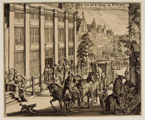 Curator: Let's discuss this drawing titled "The basilica of San Bartolomeo all'Isola", credited to Achille Pinelli. It looks like the work combines pen, watercolor, and perhaps even charcoal. What strikes you most immediately? Editor: The contrast between the formal architecture of the basilica and the somewhat chaotic everyday life in the foreground really captures my attention. It’s all held together by the muted palette of browns, creams, and grays. Curator: I agree. Pinelli gives us a window into the socio-economic context. You've got what appears to be the clergy in the foreground and then artisans actively engaged in repair or demolition of… possibly a chair, to the right, representing two very different types of labour and their proximity within the cityscape. Editor: Indeed. Focusing on the facade of the basilica, there's a clear hierarchy in the architectural design. The play of light and shadow, captured with watercolor, highlights the different levels of the building. It brings depth and dimension, making it feel grounded. Curator: The history of the basilica itself is intertwined with shifts in Roman society. Built upon the site of an ancient temple, later transforming into a hospital, and then, of course, the basilica we see here speaks to how spaces of labor shift through material reuse, adaptation, and even demolition to meet new social needs. Editor: You’re right. And if we return to the forms and their arrangement: notice the strong verticals in the architectural elements versus the diagonals implied by the gestures of the artisans. These lines guide the eye. The verticals reinforce a sense of established order and hierarchy. Curator: Precisely! And it's key that this drawing incorporates a combination of pen, charcoal, and watercolor which reflects the labour-intensive methods inherent in artistic production and also the social function of such visual documentation. Editor: I find that visual complexity quite appealing. It elevates a city scene beyond a simple historical record. It turns a commonplace view into something striking. Curator: I agree completely, I am drawn in by the layers of meanings about place and practice the drawing unearths for us.