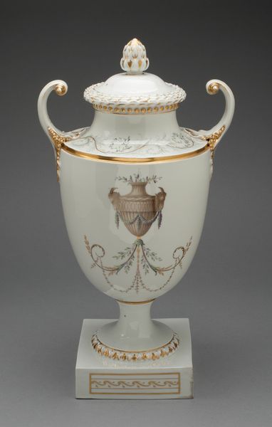 This porcelain flowerpot container was made by Loosdrecht, and its elegant design speaks volumes. The handles are formed by swans, symbols of grace and purity, yet also deeply entwined with tales of transformation and love, think of Leda and the Swan! The basket overflowing with fruit, centered within a painted medallion, is more than mere decoration. It evokes images of abundance, and nature’s bounty, reminiscent of classical cornucopias found in ancient Roman art. This motif, signaling prosperity, has been repurposed across centuries in various contexts, from religious allegories to secular displays of wealth. The presence of the swan coupled with the basket of fruits stirs a sense of longing, echoing how symbols resonate and transform through time and collective memory. It is a testament to the enduring power of images to engage us on a profound, often subconscious, level.