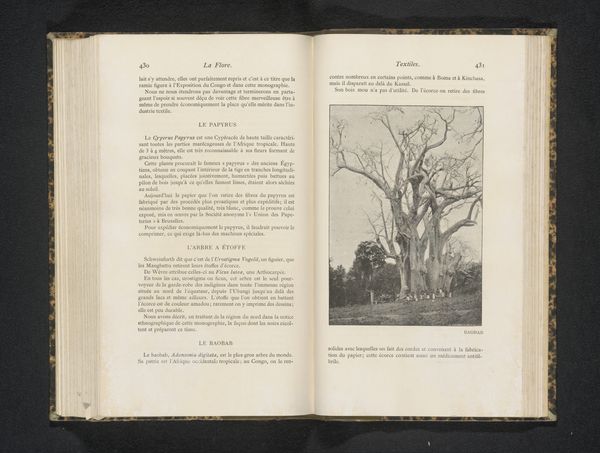 This photograph, "Landschap met een zitbank" by Ph. et E. Link, is printed in a book, maybe from the early 20th century. It captures a landscape with a bench, using tones of grey that feel both ghostly and direct. It's like the beginning of an idea, a sketch in light and shadow, still somehow open-ended. The bench, just sitting there by the water, it's almost comical. It implies a narrative, a waiting, or maybe just a quiet moment in time. I'm drawn to the way the light interacts with the trees, they're not sharp, but soft, like a memory. The book print gives it a kind of historical weight; the texture of the paper itself becomes part of the image. It's not about perfection, but about a feeling, an evocation of a place. It puts me in mind of Caspar David Friedrich, who also thought about nature, or perhaps Eugène Atget, thinking about photography as a document. Ultimately though it is a quiet meditation on light, landscape and time.