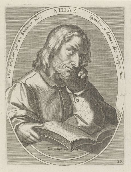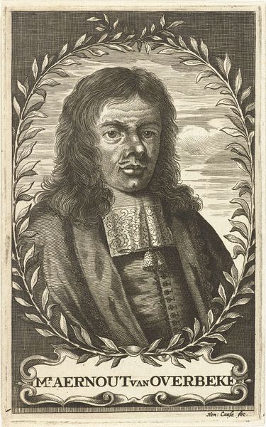 Albertus Clouwet’s portrait of Guercino presents the artist within a floral frame, holding his tools of the trade. The wreath of foliage and roses surrounding him, symbols of accomplishment and beauty, situates Guercino within a lineage of artistic masters. Consider the act of holding the brushes: a gesture that recurs throughout art history. From ancient Egyptian scribes with their styluses to Renaissance painters displaying their palettes, this posture signifies skill and creation. However, it is not merely technical prowess that is being conveyed. This presentation carries echoes of religious iconography, like the presentation of saintly attributes. The brushes become emblems of divine inspiration, and Guercino's act of holding these brushes becomes an almost sacred rite, a testament to the artist's ability to channel creative energies. This symbol evolves through time, resurfacing in various contexts, yet always retaining its core association with skill, authority, and the transformative power of the artist's hand.