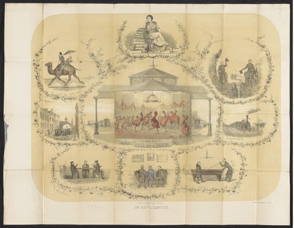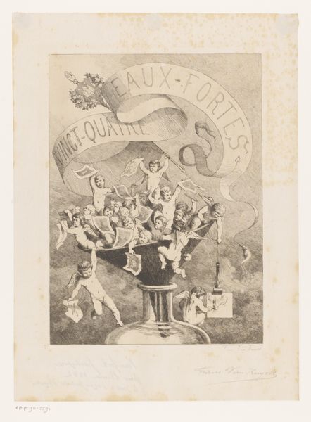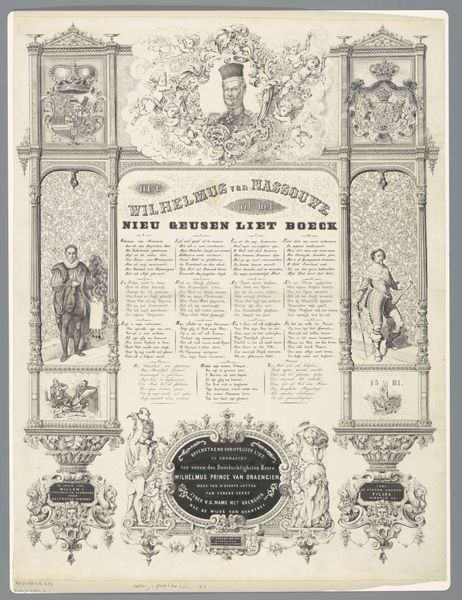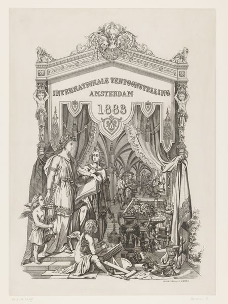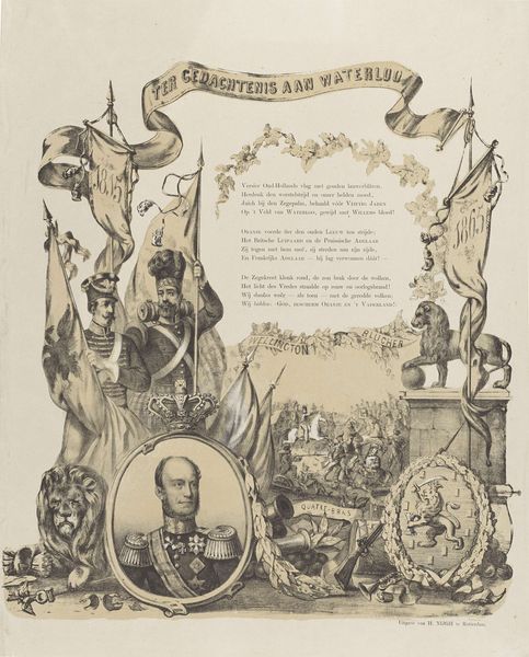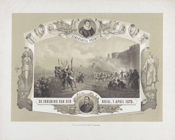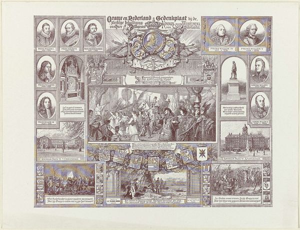 This print, commemorating Dutch independence, was made by Roelof Raar in 1888. It marks 75 years since the end of French rule. The image creates meaning through its visual codes and historical associations. The central figure, likely William I, is surrounded by images of military conflict and national unity. It speaks to the cultural and political context of the late 19th century, when national identity was being solidified through such public displays. The print presents a self-consciously progressive view of Dutch history, emphasizing the importance of independence and national pride. To understand this print fully, we need to examine the social conditions that shaped its production and reception. Archival research into the institutions and organizations that commissioned and displayed such works can reveal the complex interplay of political, economic, and cultural forces that shaped Dutch national identity.