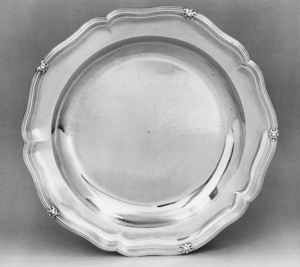 This silver dish was made by Edme Paul Leblond, sometime before his death in 1745. Silver is a luxurious material, and working it demands great skill. The flat, reflective surface shows how carefully the silversmith must have hammered and planished the metal. Notice, too, the fluted pattern around the inside of the rim, and the precisely executed gadrooning around the edge. These are subtle details, but they would have taken hours to execute. Consider the social context here: silver was the preserve of the wealthy. Owning this dish meant having the resources to commission it, and the staff to keep it polished and in good order. This object encapsulates the labour and artistry required to create it, revealing a hierarchy of skill, class, and consumption. By appreciating the mastery involved in its creation, we recognize the true value of this elegant piece.