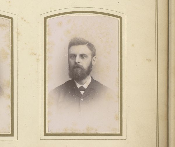 This is a portrait of a man with a beard by Cornand et Cie. The photograph is set within an oval frame that immediately draws the eye to the subject’s face. The tones are muted, dominated by greys and browns, and the composition centres on the man’s upper body. The lines are clean, creating a sense of order and formality. Photographs from this period functioned as semiotic markers, encoding social status and identity. The man's formal attire—suit and bow tie—combined with his poised posture, presents a carefully constructed image of bourgeois respectability. The oval frame further isolates the figure, suggesting a contained, almost classical sense of self. Yet, the very act of framing also destabilizes the notion of a fixed identity. The subject is both present and distanced, captured within the confines of representation. As we consider this image, remember that portraits like these are not merely records of appearance but complex negotiations of selfhood and social expectations.