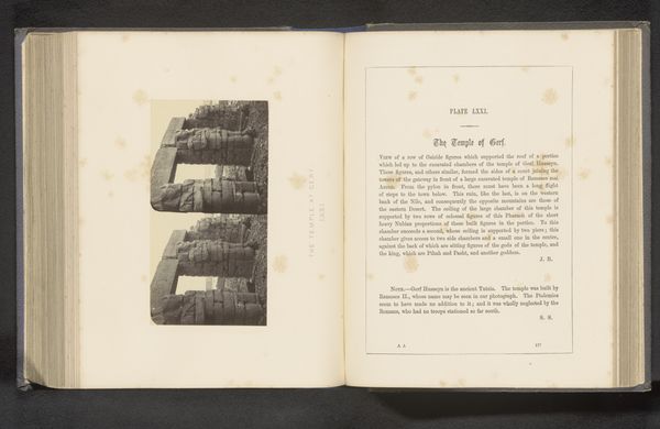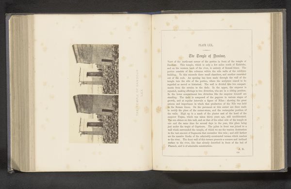 Editor: Here we have Francis Frith’s albumen print, "Gezicht op de ruïnes van de tempel van Debod te Aswan," created before 1862. It depicts the temple ruins, and honestly, there's a certain romantic quality to seeing these ancient structures photographed so long ago. It makes you wonder how they experienced the era. What’s your perspective on this photograph? Curator: Well, immediately, I consider the context of 19th-century photography and its relationship to Egypt. Photography was still relatively new, and Egypt held a huge fascination for Europeans. We have to think about this image not just as a neutral depiction, but as a product of its time. What political and social forces do you think shaped the creation and reception of images like this one? Editor: I suppose it feeds into the broader European fascination with ancient civilizations, perhaps with a hint of exoticism? A sense of colonial power, even? Curator: Exactly! Photography like this contributed to the construction of Egypt as an exotic, ancient place ready to be “discovered” and, in a way, possessed by the West. Think about the power dynamics at play: who is behind the camera, who is consuming these images, and what impact does that have on the local population and their cultural heritage? This particular image, an albumen print, points to that history of representation. It evokes notions of empire and control. It frames the Egyptian landscape as something static and monumental, removed from its contemporary context. Editor: That’s fascinating; I hadn't considered the power dynamics embedded within what seems like a straightforward landscape photograph. This feels like a completely new way of looking at photography's role within society. Curator: Right! And thinking about how this photograph might have circulated— in books, displayed in galleries—allows us to better understand its role in shaping public perceptions of Egypt at that time. These photographs weren't merely documents; they were powerful tools in shaping narratives. Editor: That’s incredibly insightful. It’s helped me see this print less as a picture and more as a historical document laden with social and political meaning. Curator: And that understanding, that awareness, is how we start to unpack the complexities behind even the seemingly simplest works of art.