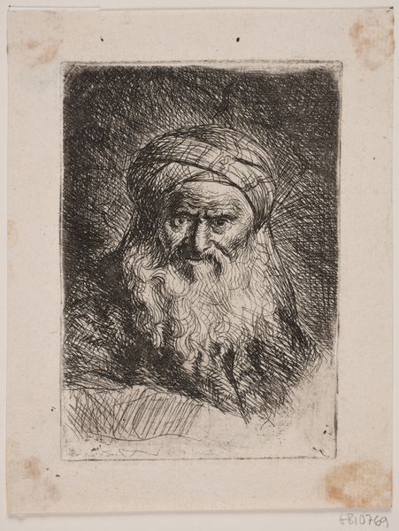 Giovanni Benedetto Castiglione created "Head of an old man with a turban facing left" as part of his "Small Heads in Oriental Headdress" series, using etching techniques. Set against the backdrop of 17th-century Europe, a time marked by burgeoning trade with the East, Castiglione's work reflects a growing fascination with, and often romanticized, depictions of "oriental" figures. The series is evocative of the complex, often colonial, gaze through which Europe encountered the cultures of the Middle East and Asia. Consider how Castiglione, as a white European male, was positioned to interpret and represent cultures vastly different from his own. What does it mean to portray someone through the lens of the "other"? Castiglione’s detailed rendering of the turban and beard invites viewers to consider the intersection of identity, representation, and cultural exchange. The artwork prompts us to reflect on the power dynamics inherent in cultural representation and the importance of understanding the diverse narratives of those who have been historically marginalized.
