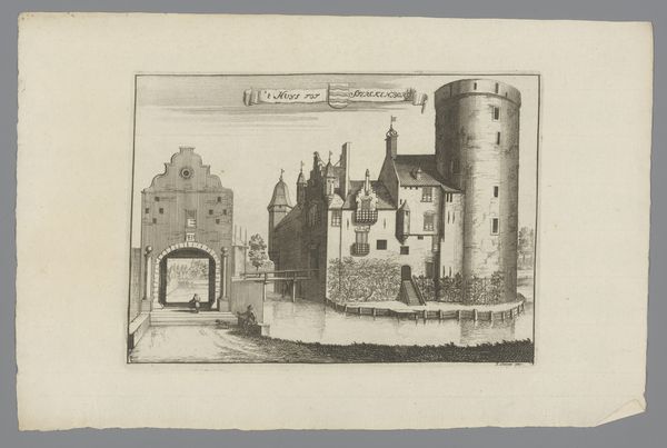Editor: So, this is "Gezicht op slot Abcoude," a drawing made by Alexander Oltmans sometime between 1824 and 1853. It's an engraving on paper, and it feels so… nostalgic. Almost like a fairy tale illustration, but with a melancholic edge. What do you see in this piece? Curator: I see more than just a pretty castle. This work allows us to examine ideas of power, class, and land ownership within the historical context of 19th-century Netherlands. How was the artist implicated in these power structures? Consider the artist's choice to depict the castle from this specific viewpoint, seemingly at eye level. Does that affect how we understand his relationship to wealth and influence? Editor: That's a cool question. I guess it *does* feel like he's presenting the castle as something imposing but also maybe something… accessible? Almost relatable even? Curator: Exactly! We must interrogate whose stories are centered and whose are marginalized. Consider the communities that may have lived and worked in the shadow of this castle, and how their experiences were likely very different from those who inhabited it. Who benefits from glorifying such places? Editor: So, looking beyond just the romantic aesthetic – to consider the human impact behind the image. I’ll remember to investigate an artwork’s complex web of social relations, not just its surface beauty. Curator: Precisely! Thinking critically helps us engage more meaningfully with visual culture. It makes this image an active space for dialogue and analysis, rather than a passive experience.