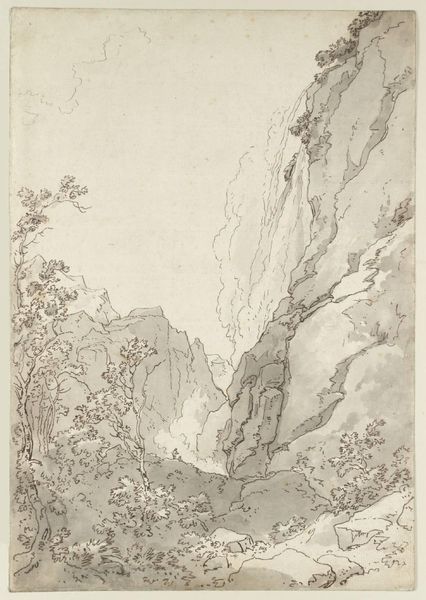 A(nthony?) Regnier created this wash drawing of a river between overgrown rocks, with a road on the right. The artist’s identity remains somewhat elusive, leaving us to consider the context of landscape art and its relation to identity and perception. Landscape art has often been associated with the male gaze and the romanticization of nature. Yet, this drawing challenges those traditional representations by infusing an emotional, personal dimension. The choice of subdued colors evokes a melancholic atmosphere, inviting us to reflect on the intersection of nature and human experience. The presence of a road suggests human intervention, prompting contemplation on the relationship between nature and society. How do we negotiate our presence within the natural world, and what impact do we leave behind? This artwork shapes our understanding of nature and societal issues, encouraging us to think critically about our place in the world.