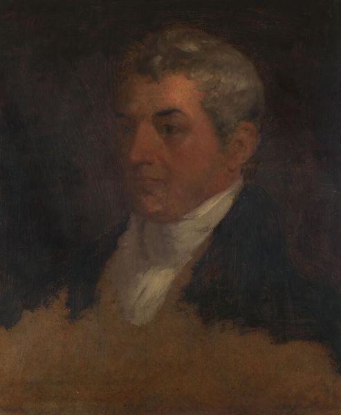 Editor: Here we have Gilbert Stuart’s portrait of Joseph Stevens Buckminster. The subdued palette and the sitter’s serious expression give the work a rather solemn tone. What can you tell me about its historical context? Curator: This portrait, displayed at Harvard, reflects the cultural elite's interest in portraying learned figures. How does the subject's attire influence your perception of his social standing and the role of education in early American society? Editor: It certainly projects an image of respectability and intellectualism. It makes me wonder about the relationship between portraiture and social identity. Curator: Precisely. The act of commissioning and displaying such a portrait served to reinforce status and shape public perception. Editor: It’s fascinating to think about art’s role in constructing social narratives. Curator: Indeed. This painting offers insight into the values and aspirations of a specific segment of early American society.