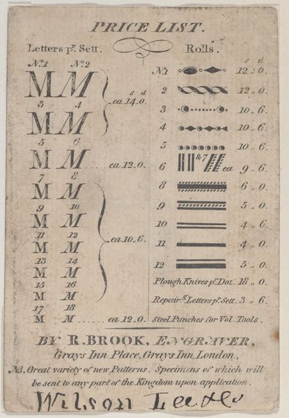 Editor: This piece, "Alchera," by Joe Tilson, created between 1970 and 1974, presents as a kind of botanical chart. The words are intriguing, but the format makes me think of a game. What connections do you see here? Curator: The dedication "to Eros & Orpheus," invites us into a rich symbolic field. Tilson is not just cataloging, but evoking primal creative forces. Notice the color swatches. What feelings do they evoke when paired with their plants? Editor: I see how "Hawthorn" is paired with black and white; it feels stark. "Willow" has green, so it feels more expected, I guess. Curator: Exactly! Consider the title: "Alchera" refers to the dreaming in Aboriginal culture. Tilson interweaves Western and indigenous creation myths. It shows how symbols persist across cultures and time. Editor: That's so cool. It makes you think about the deeper connections between nature, myth, and art. Curator: Indeed. It reveals how one can draw on our shared cultural memory when representing the natural world.