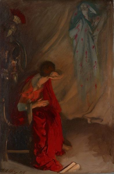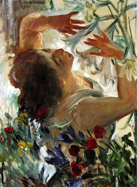 Editor: Here we have Giovanni Boldini's oil painting "La Toilette". It depicts a woman arranging her hair, and I find it quite intimate. What catches your eye, or how do you interpret this work? Curator: This piece operates within the tradition of the female nude, a loaded genre historically shaped by the male gaze. I see it as an opportunity to discuss the performance of femininity and the ways in which women have been objectified and simultaneously found agency. The "toilette," the act of grooming, becomes a moment of introspection but also of presentation. Is she preparing herself for someone else's gaze? Or is this an act of self-care? Editor: That's a perspective I hadn't considered! I was focused more on the cat, and the overall Impressionistic style and softness of the image. So, is the presence of the cat just another tool of male-gaze painters to soften or perhaps allude to the character of the female figure? Curator: Precisely! The inclusion of the cat might seem innocuous or merely decorative. However, we can analyze it through a critical lens. In the 19th century, cats are often associated with domesticity and femininity, but they could also carry connotations of sexuality and independence, perhaps hinting at societal expectations versus a woman's own desires. Editor: That really gives me a new way to think about genre paintings. It's more than just capturing a moment, isn't it? Curator: Exactly. By understanding the historical and social context, we can decode the artwork’s cultural assumptions. Art invites conversations about these critical themes even today. What do you make of the woman's positioning related to the mirror? Editor: Thinking of it in that light, there's something more assertive and perhaps a quiet determination to the act of adorning the self for personal expression and/or survival. Thanks for opening up a new way of analysis! Curator: And thank you for bringing such insightful observations. The conversation around gender, sexuality, power, and representation in visual culture can always keep pushing forward.