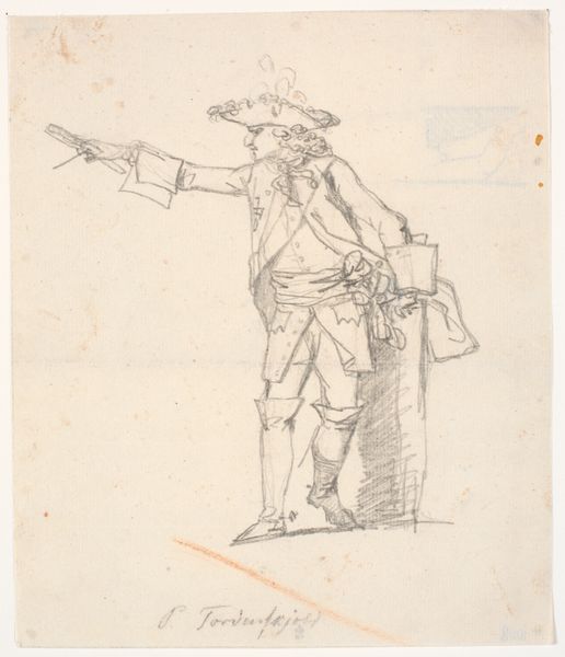 This line drawing, created by Paulus Charles Gerard Poelman, captures a stout man with a cane. Consider the figure's staff. Throughout history, the staff has been a symbol of authority and guidance. Think of Moses leading his people, or the scepters held by monarchs. Here, the staff is shorter, perhaps suggesting a more personal authority, or even a hint of self-mockery. The figure's exaggerated form, combined with the staff, evokes archetypes of both power and folly. The figure's posture and attire are reminiscent of characters from commedia dell'arte, figures whose gestures and costumes conveyed stock emotions and social types. In this context, the image becomes a study of how symbols and gestures are re-imagined, carrying echoes of past meanings, and opening up to new interpretations across time. In a way, it echoes our collective memory, where figures of authority are constantly re-evaluated and re-presented.