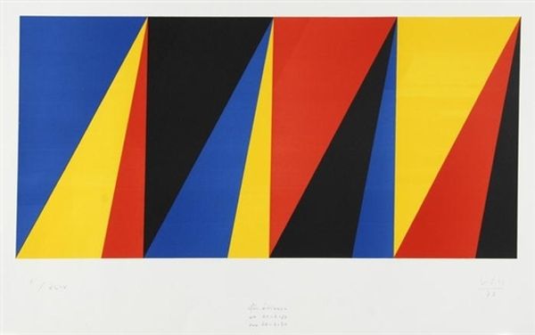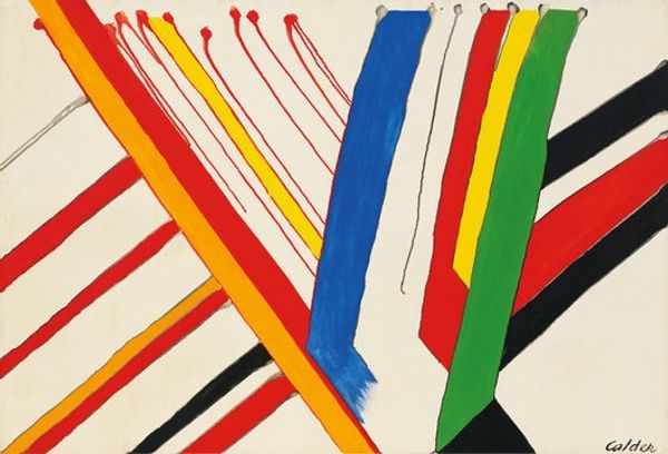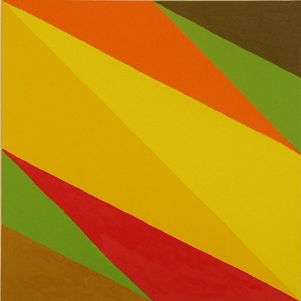 Sam Gilliam made this painting, Shoot Six, with some kind of paint on canvas, and what strikes me is its bold simplicity. I mean, it's just stripes radiating from a point, right? But look at how Gilliam handles the paint. It's smooth, almost like it’s been sprayed on, and the colors are so clean and bright. It’s like he’s not trying to hide the process at all, but laying it bare for us to see. Take that bright blue stripe – it's so flat and unapologetic, but the edges are so sharp, it really pushes against the orange one next to it. You get a sense of energy, like these colors are vibrating against each other. And that thin white line separating each block of colour? Genius! It's like a pause, or a breath, allowing each color to sing its own tune. Gilliam’s work reminds me a little of Kenneth Noland’s, but with a kind of off-kilter rhythm all its own. It's this push and pull between control and chaos that makes it so engaging. It doesn't try to tell you what to think, but invites you to feel something, and I think that is the job of art.
