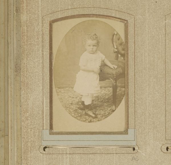 Editor: So, here we have “Portret van een meisje bij een hek,” or "Portrait of a Girl by a Fence" by Hendrikus Jakobus Bast, dating from around 1890 to 1910. It looks like a photograph. There's something so touchingly innocent about it. It feels very staged, and the muted tones almost make it seem like it’s from a lost world. What draws you to this piece? Curator: Oh, that feeling of a lost world is spot-on. For me, it's the simplicity, almost a naïve quality, that hooks me. The girl’s gaze, somewhat unfocused, draws you in. I like the contrast too. The rawness of the weathered fence versus her pristine dress. Do you think the fence acts as some kind of symbolic barrier? Is it there to divide the innocence of childhood with the unknown future? Editor: I hadn’t considered that. The fence does seem quite prominent now that you mention it, perhaps hinting at boundaries, and a certain separation from nature given the idyllic backdrop of land meeting sky. Curator: Exactly. It’s that tension between confinement and freedom that vibrates throughout the work, at least for me. Makes you wonder what she’s thinking, right? It is fascinating to reflect on what details stand out to us, and what we then project into them. Editor: Absolutely. I think I'll be looking at photography differently now. I hadn’t considered all those layers hiding behind a simple photograph of a young girl. Curator: Isn't it wonderful when art surprises you like that? Changes how you see things, even just a little?