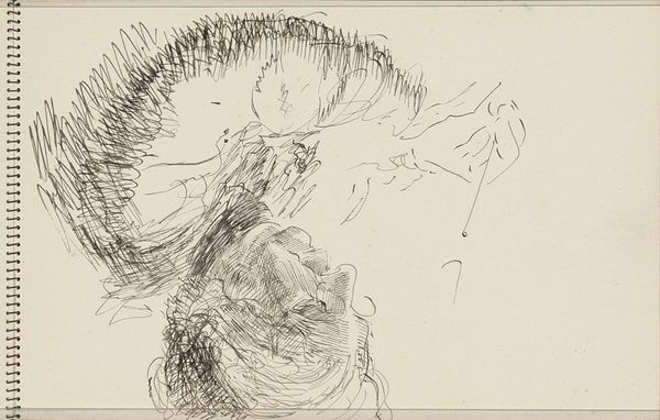 Carel Adolph Lion Cachet made this sketch of Joanna Lion Cachet-Cordes, using what looks like pencil or charcoal, capturing a moment in time on paper. The immediacy of the medium and the directness of the line is what grabs me here; you can almost see the artist thinking and feeling through each stroke. Look at how the frantic scribbles above her head contrast with the calmer, more deliberate lines defining her face. The weight of the line varies, creating depth and shadow with so little, just a shifting pressure on the page. It's like we're peering into the artist's mind as he works, witnessing the translation of a three-dimensional being into a two-dimensional form. There's a raw honesty to it, a vulnerability, that reminds me of some of the rapid figure drawings by Egon Schiele. Both seem to celebrate the art-making process as much as the subject.