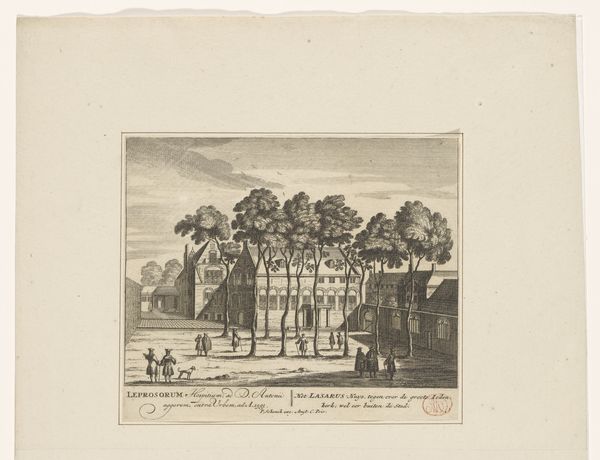 Editor: Here we have Bartholomæus Roque's etching from the 1740s, "Charlottenlund tilforn Gyldenlund," depicting a palace and grounds. I'm struck by the formality of it all, the rigid geometry of the garden and the rather self-conscious poses of the figures. What do you see in this piece beyond the aesthetic? Curator: What interests me here is how this print served as a piece of visual propaganda, constructing an image of power and civility. It's not simply a depiction of Charlottenlund Palace. Consider the socio-political function of representing the palace, once called Gyldenlund. Who was it meant to impress? Editor: Presumably, other nobles or perhaps even foreign dignitaries? To show off the wealth and sophistication of the Danish court? Curator: Exactly. Etchings like this circulated widely. Think about the Baroque obsession with spectacle and control. This image, distributed as a print, played a role in shaping public perception of the monarchy. The formal garden, the orderly architecture - they all signify a triumph of reason and order, key virtues associated with good governance during this period. Notice how the very landscape is managed and controlled. How might this representation reflect on the perception of absolute monarchies and power in 18th century? Editor: It makes you wonder how accurate this image actually is. Is it reality or wishful thinking, crafted to enhance the reputation? The figures look staged, more like ornaments in the landscape. Curator: That is an astute observation. It highlights the role of art in constructing idealized visions of the ruling elite. Were the nobles actually using this place? Was it intended to show the place, or to create the sense that it should be respected by those that saw this etching? Even in the 'documentary' landscapes we have to remember that the politics are embedded into them. Editor: So, it’s less a window into the past and more of a carefully constructed narrative. I'll definitely look at these landscapes in museums differently now. Thanks! Curator: Indeed, recognizing the interplay between art and political agendas opens a whole new way to look at art. A vital lesson, I believe!