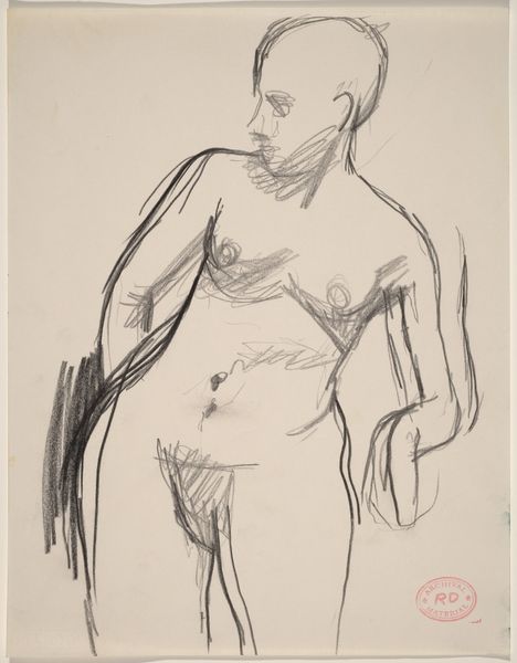 Editor: Here we have Richard Diebenkorn's "Untitled [back view of a male nude and a gesture study]" from between 1955 and 1967, using ink and watercolor. The palette is restrained, mostly shades of grey, and the figure seems so solitary. What do you make of it? Curator: It's fascinating how Diebenkorn isolates the male form. Consider the historical context. Mid-century art wrestled with the figure after the war, often questioning traditional heroic depictions. Does this nude seem heroic to you? Editor: Not at all. He seems quite ordinary, almost vulnerable. Curator: Precisely! Diebenkorn potentially challenges the idealized male nude so prominent in art history. The loose ink washes also democratize the image – it's not a grand oil painting meant for a palace. It is a drawing, suggesting intimacy and perhaps even the process of observing a live model. Editor: The other abstract shape on the left-- what about that? Curator: That fragment emphasizes the study aspect. Perhaps it’s a discarded idea or a warmup. It reinforces the sense of the artwork being more about process than finished product, placing value on the artist’s practice, much like the social realists and WPA artists. Consider the shift from publicly commissioned works to studio-driven pieces after World War II; does that resonate here? Editor: I think so. It feels more personal, like a glimpse into his private artistic exploration, as a comment on society and identity. Curator: Exactly! And that intimate portrayal arguably reflects broader social shifts, from grand narratives to more individual perspectives. Editor: It's amazing how a simple drawing can hold so much historical context. I see this artwork so differently now. Curator: Absolutely. And hopefully you understand how art pieces act as valuable artifacts, not only reflecting our own values but changing them and informing discourse as well.