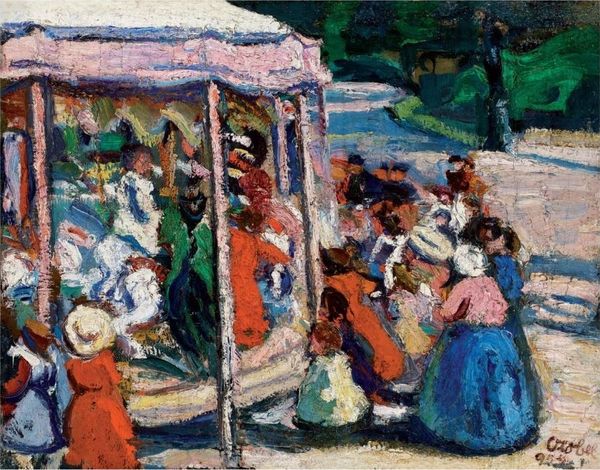 Samuel Peploe painted "Étaples" using a vibrant palette of blues, whites, and touches of red, applied with bold, expressive brushstrokes. These colours create an atmosphere that is both lively and serene. Peploe’s composition here defies traditional representation. The buildings and figures seem to emerge from the very texture of the paint, blurring the boundaries between the subject and the medium. The thick impasto and broken brushwork fragment the scene, reflecting a modern sensibility that questions fixed perspectives and stable forms. This approach to painting invites us to consider how meaning is constructed through the act of perception. Peploe uses the materiality of paint to challenge our assumptions about space and form. The painting thus becomes a site of continuous visual interpretation, encouraging viewers to engage actively with the artwork and its ever-shifting possibilities.
